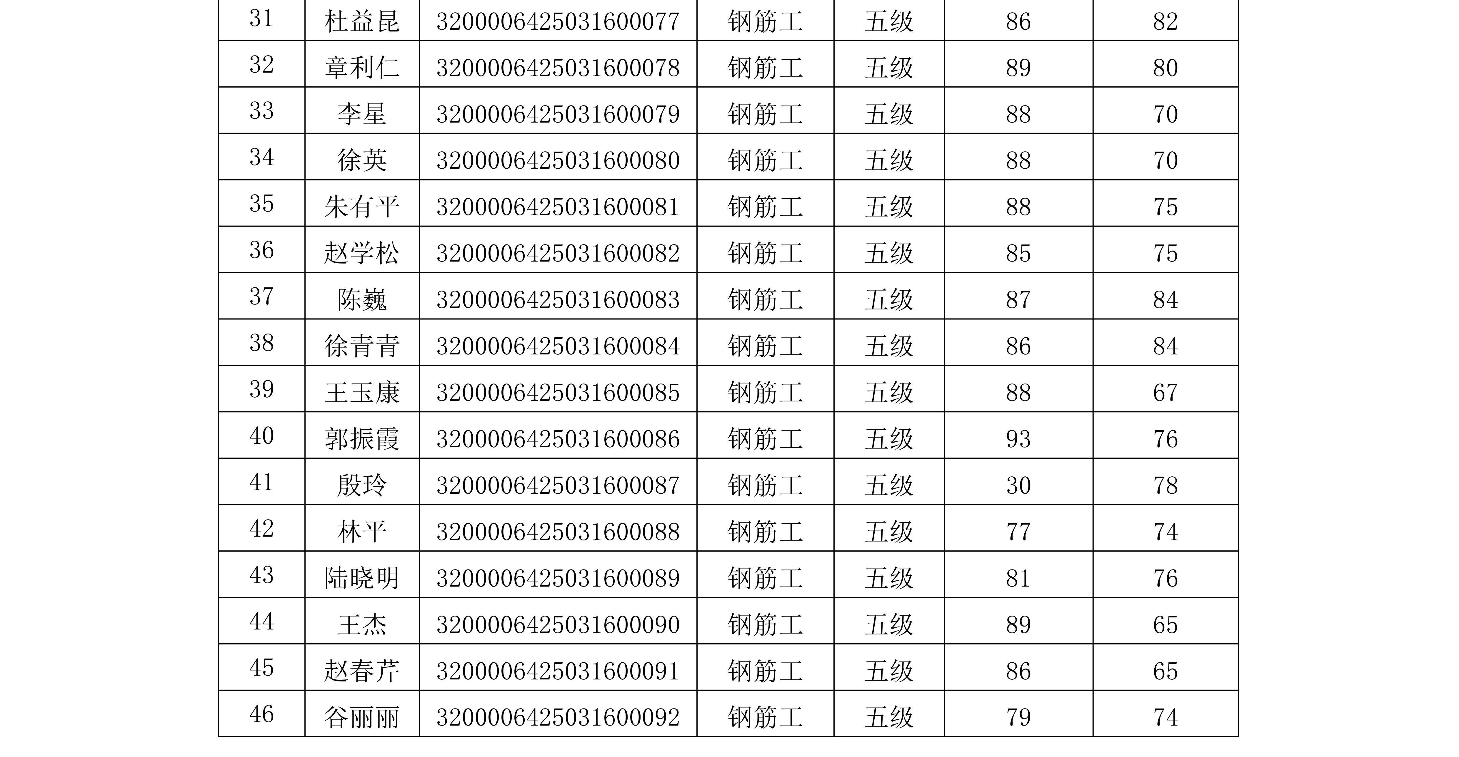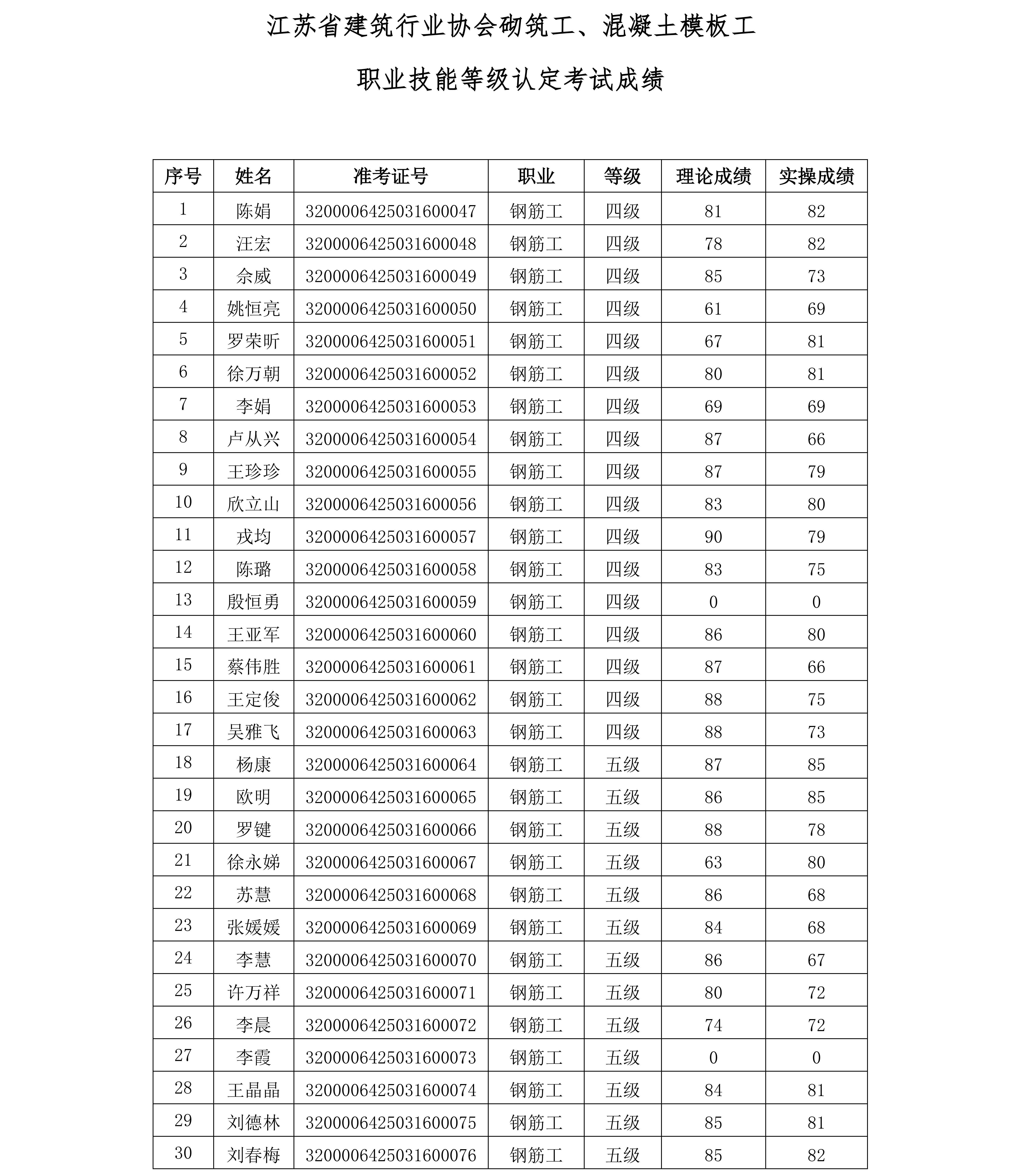 现将2025年3月16日开运下载砌筑工、钢筋工、混凝土模板工职业技能等级认定(考试批次号为:2025-32000064-00002)考试成绩公示如下,公示期5天,如有疑问,请联系025-86555932。
