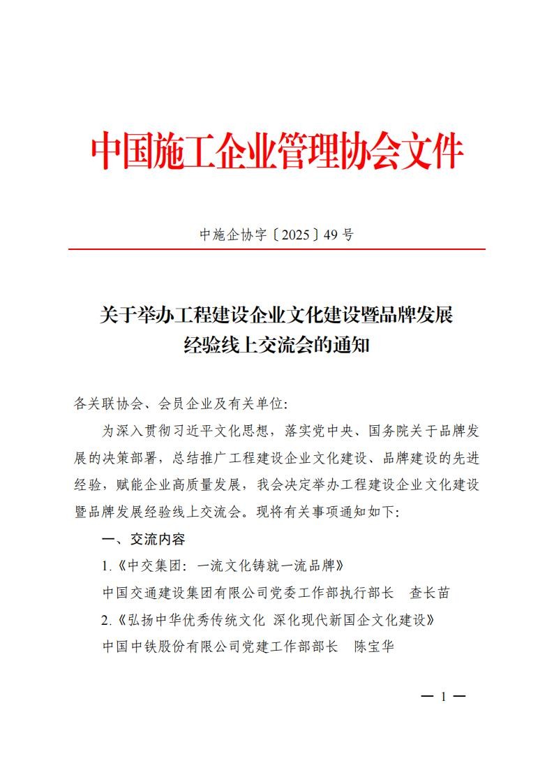 关于举办工程建设企业文化建设暨品牌发展经验线上交流会的通知